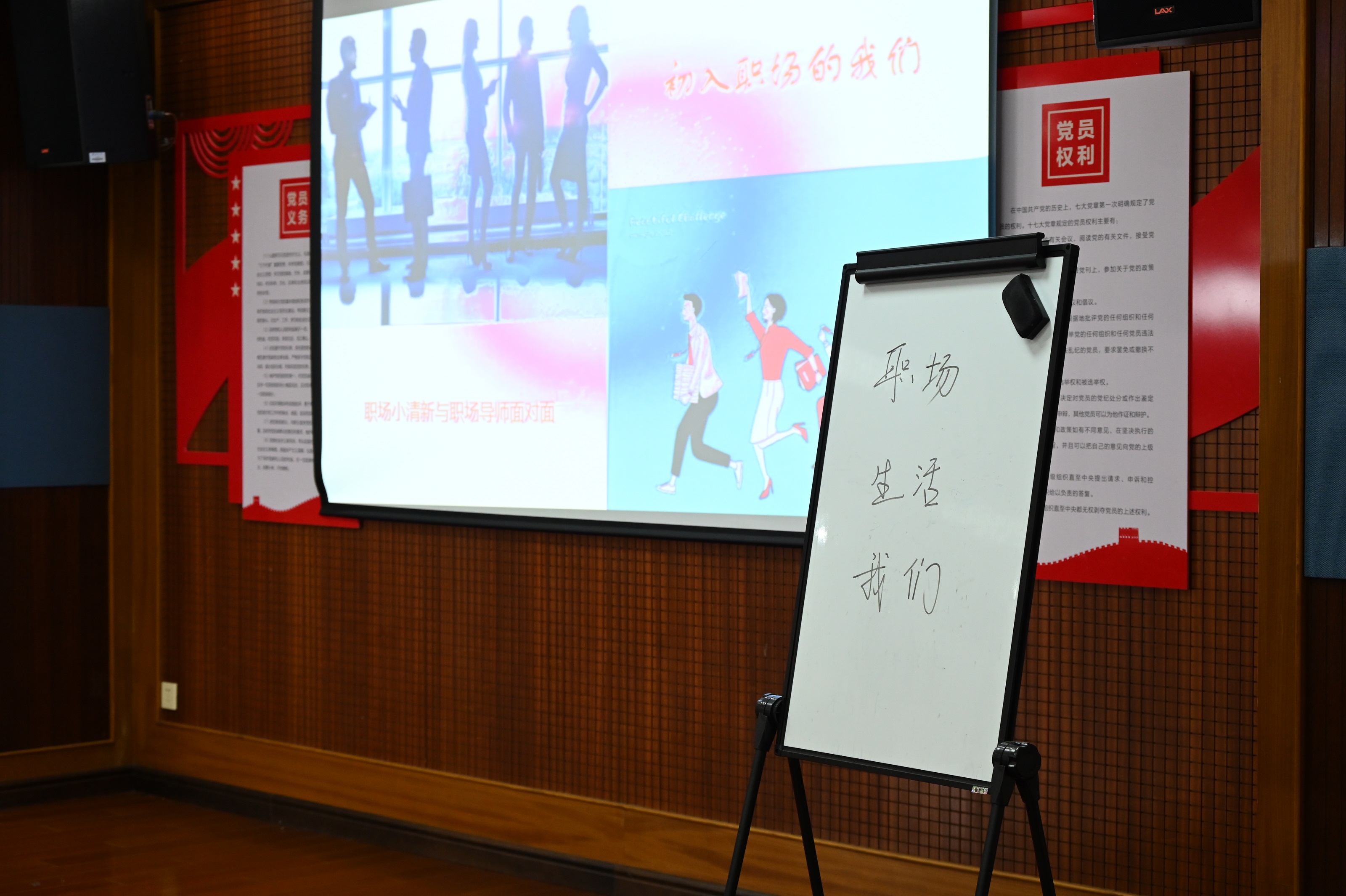 沙龙伊始,吴老师用一首毛不易的《像我这样的人》和一段职场案例视频,带同学们迅速进入情境,思考走出校园后未来社会生活的不同。引发学生深刻思考,未来的职场生活和学校生活存在哪些差异,作为职场新人,我们该注意哪些?